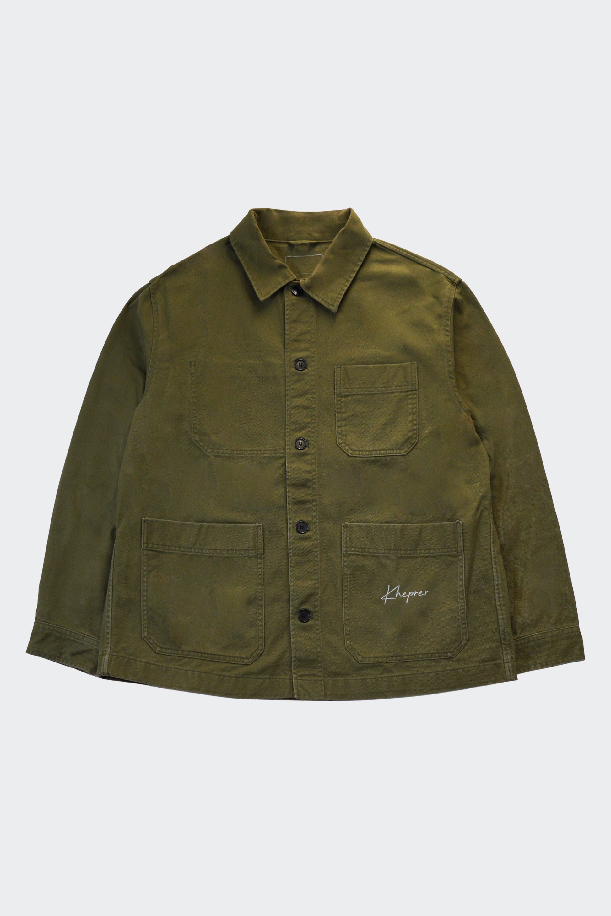 - Veste de travail Kaki vintage retravaillée artisanalement à Paris (France)